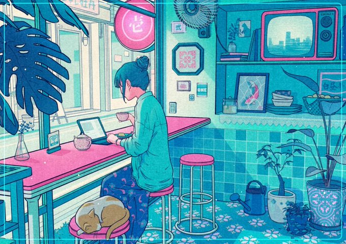 #画像を4枚晒したらrtがきてフォロワーがぶわーって増えると聞いて ほんのりのノスタルジックで、ほんのりCHILLなイラスト目指しています💙🙂💙