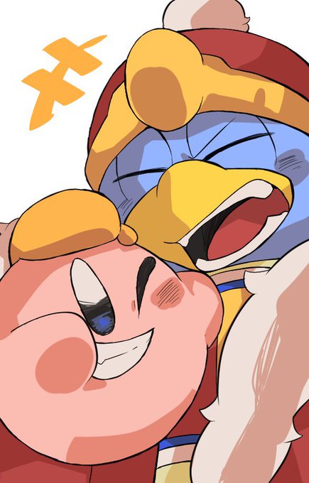 いつもの関係を忘れて戯れ合うカービィとデデデ