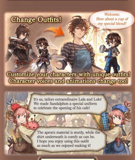 - 2022 q-pot collab, where he tells Belial to prepare 10 of his apple mousse cakes in the cafe drama