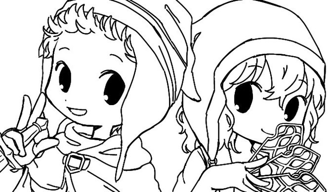 #皆さん線画と塗った後を見せてください 全部塗った後一番上から調節するから線画のみの時点と最終的な線画がちょっと違う