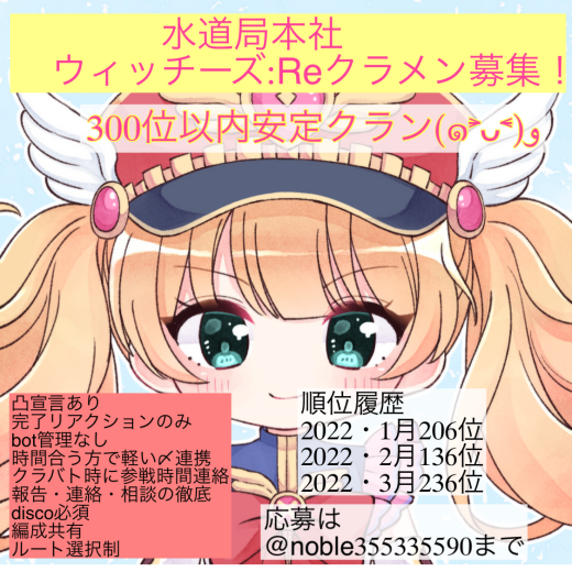 ウィッチーズ:Reは300以内安定目標に活動中で2月は206位でした