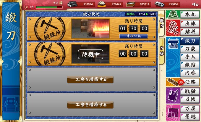 鍛刀200回やっても出ません。富士札をまた使用(゚ω。)ちり紙という噂を実感。