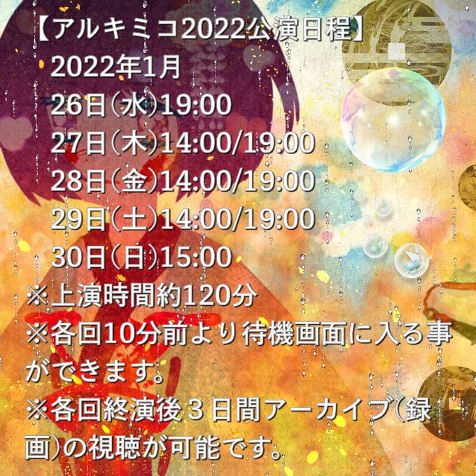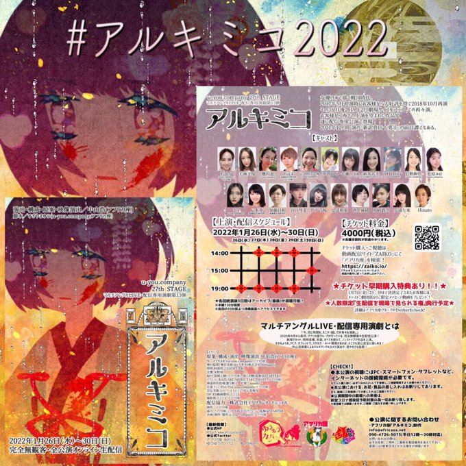 #アルキミコ2022 は残るところ本日1/29,14:00と19:00、そして明日1/30,15:00の3回のみ。