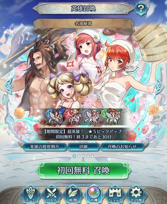 FEH 無料でヘルビンディ。 石40ぐらい砕いてサクラ。 HP⤴︎攻撃⤵︎だがスキルで補えばいいか。 このガチャは終了。
