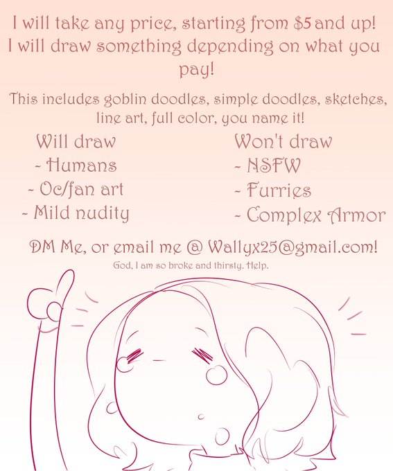 My old commission post? IDK her. Because I am in hella need of money, for my children and for like actually eating, I am opening pay your own price commissions! Hopefully everything is explained in here, if you have any more questions, please DM me or email me! rts are 💞 !