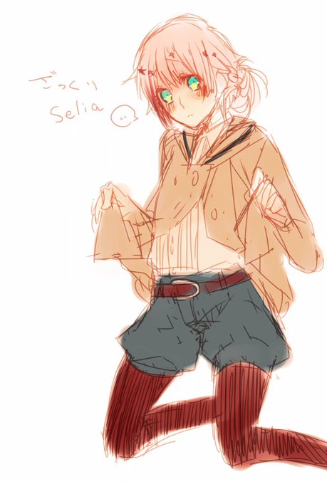 @nitodukiTL 私服。謎ポーズはアレかな、モブにほんとに君男の子???って聞かれて胸()を見せようとするセリア(???)タイツやらそういうのを履くのに抵抗がない中学二年生(アウト)
