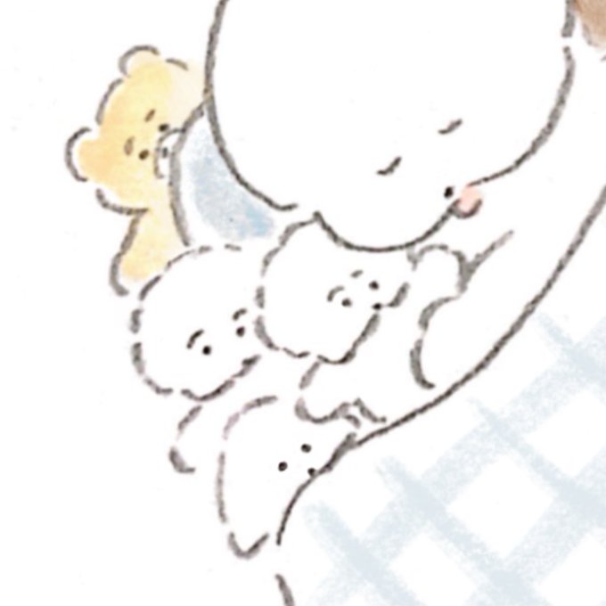 一緒に寝ているのは、お気に入りの手縫いぐるみたちワヌ🐾