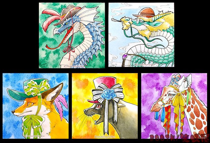 仲良しアニマル達でA4原画とドローイング3点、グッズ少量で参加します!仲良しよろしくお願いいたします~!🐶😺✨