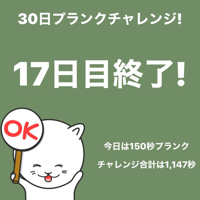 #スクワットチャレンジ 17日目終了!今日は150回スクワットしました。 #30日チャレンジ https://t.co/7VDtEao593