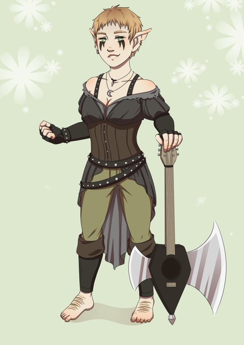 A smol doodle from today's D&D session, when the group decided to put a flower crown on my goliath-barbarian! 🌸