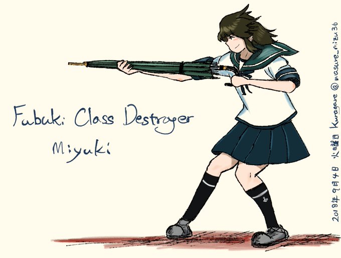 #艦これ版深夜の真剣お絵描き60分一本勝負 #艦これ版真剣お絵描き60分一本勝負_20180904 遊ばれる「司令官」の大切な傘。