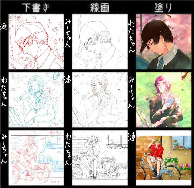 下書きと線画と色塗り、まぜこぜにして描いたよ!!!! 漣ちゃんとみーちゃん、一緒にやってくれてありがとねー!!めっちゃ楽しかった😆💕