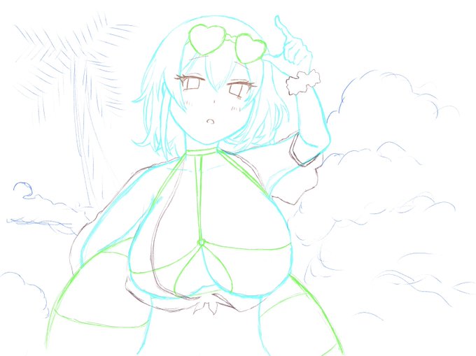 シリアス、ラフ! 夏は水着いっぱい描きたい。ᗜ ̫ᗜ。