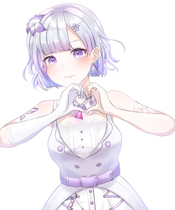 ゆるふわ白髪、インナー紫ボブ、チョーカー、タイツ、ガーターベルト、猫目、アシンメトリー衣装、無邪気、素直、美少女、美少女、美少女、美少女