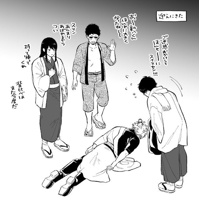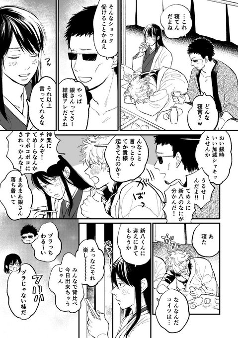 銀さん誕生日おめでと~🎉🎉 銀誕パ後の帰り道 🍓おいてめーらぁ!もう1件いくぞ!(酔) 👓あーもーこの酔っ払い行くわけねーだろ!皆もう帰ったしいい加減にしないと二日酔いになりますよ ☂️もう手遅れネその辺に捨てて帰ろー。銀ちゃんが貰ったプレゼントは食べといてあげるアル #坂田銀時誕生祭2021