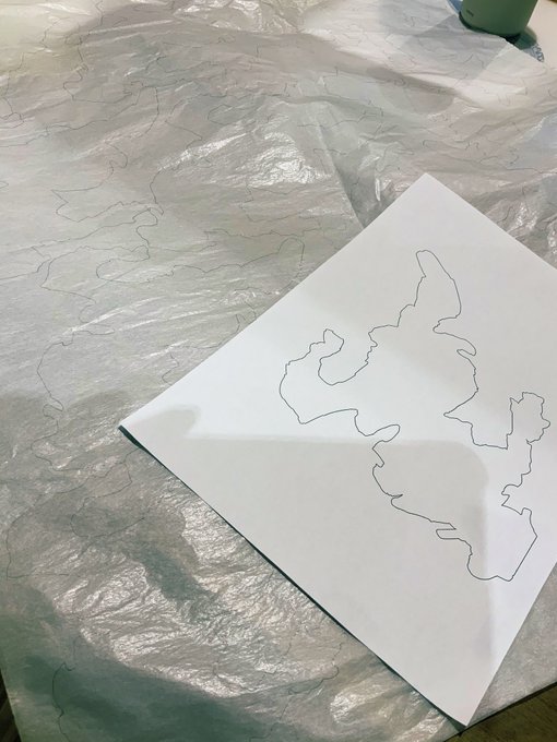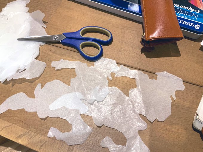 改めてマスキング計画を立てる。硫酸紙に写して切り取る。一回の刷りで一枚使い切りなので試し刷り、ミス、エディションのプレスに耐えられるだけの数を切り取り!Maji de naisyoku.
