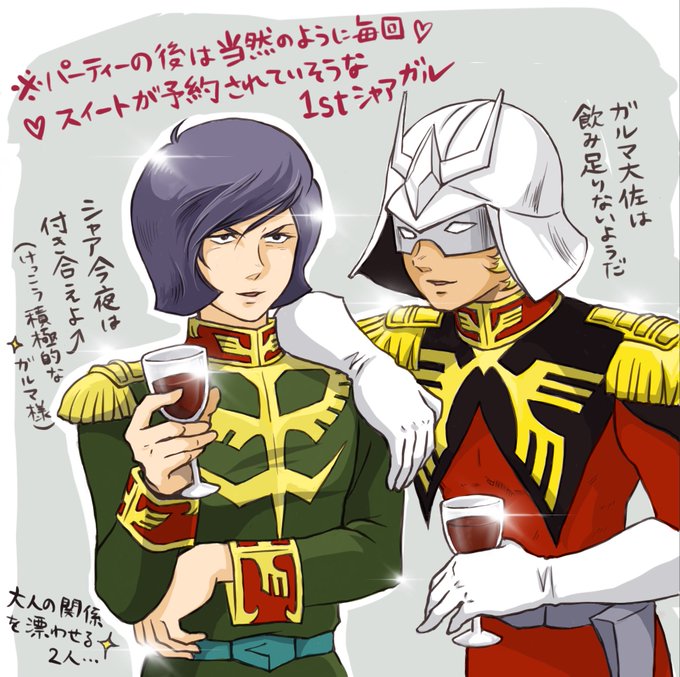 パーティーでお酒飲んでつるんでるシャアガルちゃんが大好きなんだけど、ORIGINと1stでこれくらい違いあるよね🍸🍾✨