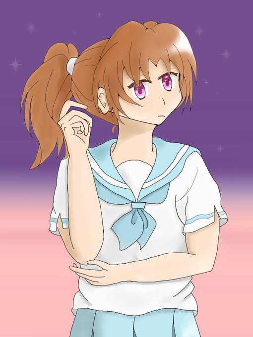 描き終えたけどもって感じ… ツインテールと舌ペロ描きたかったけどツインテールむずかった。 あとは服とかの影の描き方全然わからんかった。 顔の塗りは良かったかなとは