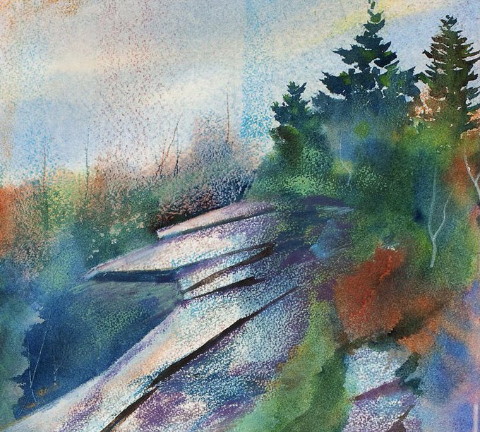 “Anvil Rock Blue Ridge Parkway” #mixedmedia #watercolorpainting #oilpastel #ncartists #weswaugh #boonenc #blueridgeparkway #Americanjourneywatercolors #cretacolor @CheapJoesArt