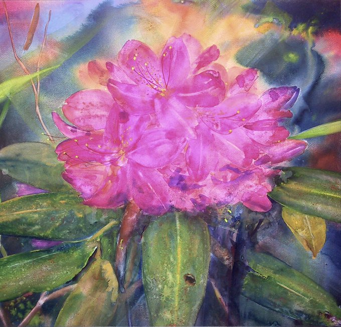 “Red Rhododendron Impression” #watercolor #wet-into-wet approach #floralpainting #ncartists #weswaugh #boonenc #americanjourneypaint @CheapJoesArt