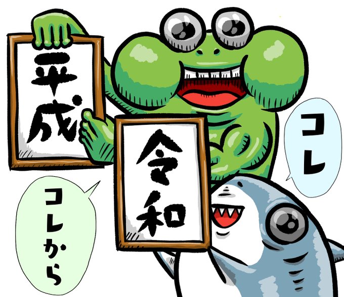 ついに今日平成最後の日ですね!🐸🦈 ・ #今日の絵日記 #イラスト #カエル #illustration #frog #medibang #メディバンペイント #サメ #不愉快なカエル #不愉快なサメ #shark #シャーク #サメが好き #sharklove #元号 #新元号 #令和 #天皇陛下 #退位 #平成最後の日 #emperor #regression #depose