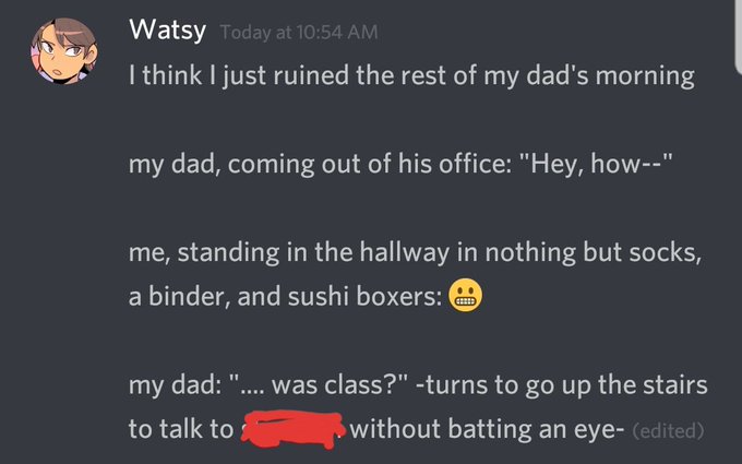 I forgot some of my clothes when I was getting dressed in the bathroom and thought I could sneak back to my room to get them unseen. It didn't work out.