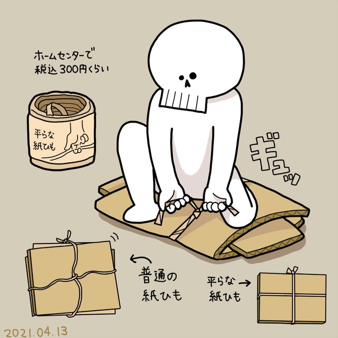 2021年4月13日(火) 資源ごみのダンボールをまとめるのが苦手だったけど 平らな紙ひもを買ってみたら緩まずギュッと結べて楽しい