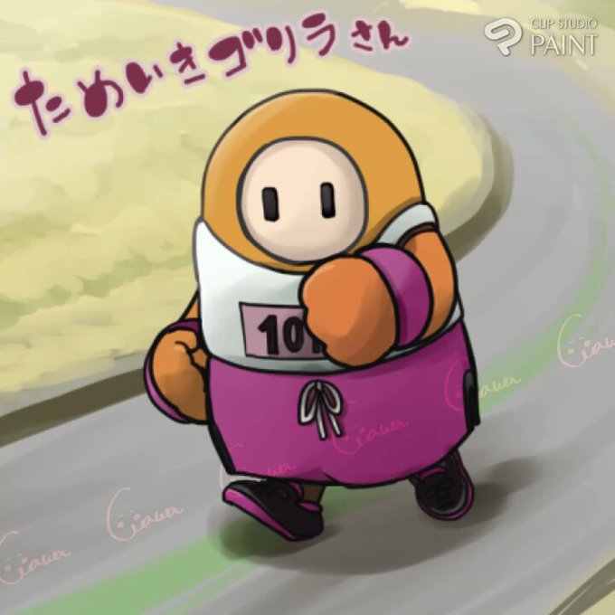 ためいきゴリラさん(@toto_3peace)ビンゴ大会景品、イラストリクエスト当選おめでとうございます!マラソンするガイズくんできました!名前なしバージョンはリプへ