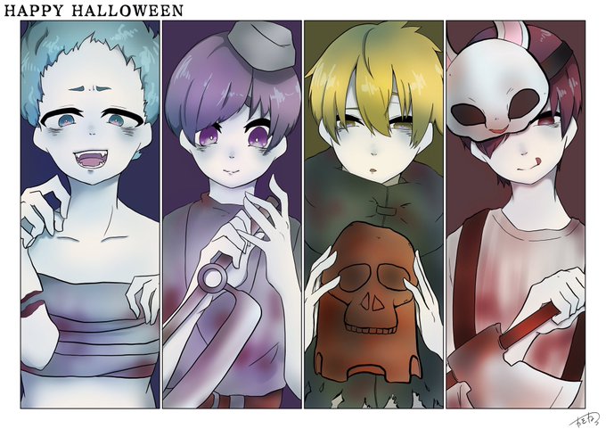 「HAPPY HALLOWEEN」な4人 今年はDBD #とどろ貴族 #きなふく #混雑組 #絵描きさんと繋がりたい #HappyHalloween