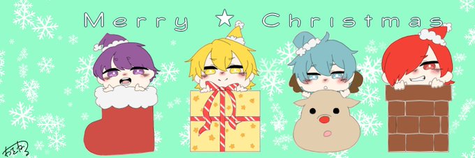 「メリクリな4人」 なんとか間に合いました(o´д`o) ヘッダーサイズですのでよければ… #とどろ貴族 #とどす #きなふく #混雑組 #絵描きさんとつながりたい