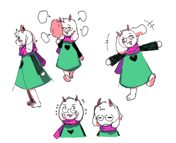 my art has considerably declined in quality since i've been back at school, so heres some deltarune doodles from last year! #deltarune #art goat boy, robot girldad, and small little guy