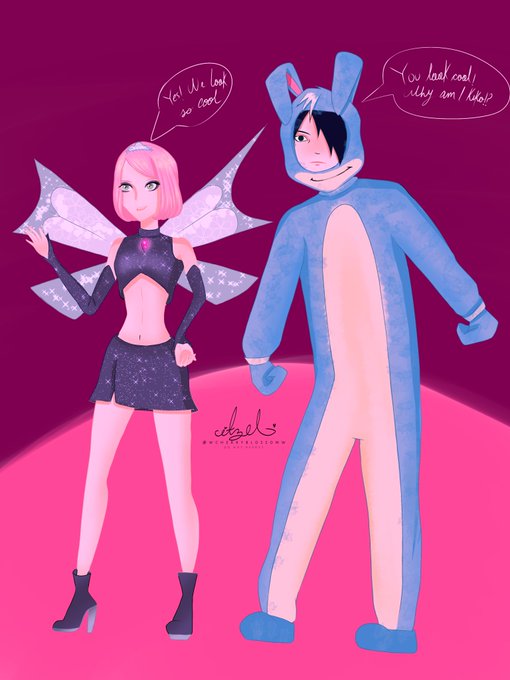 Sasusaku at Halloween party with winxclub costumes! 🎃🧚🧚♂️