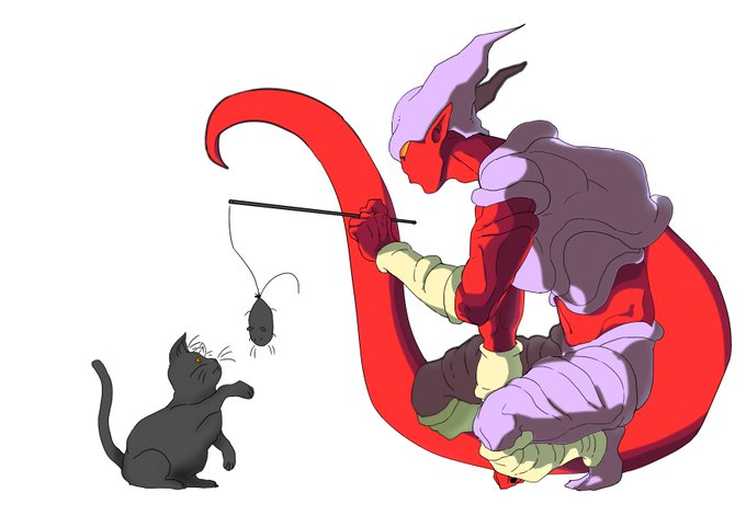 友達が尻尾の出てるキャラって尻尾事態掴まれると弱いとかあるといいよねーと言ったので衝動的に描いた。 尻尾掴まれてえっちぃ感じに反応してるジャネンバとイタズラに掴みかかったブウちゃん。
