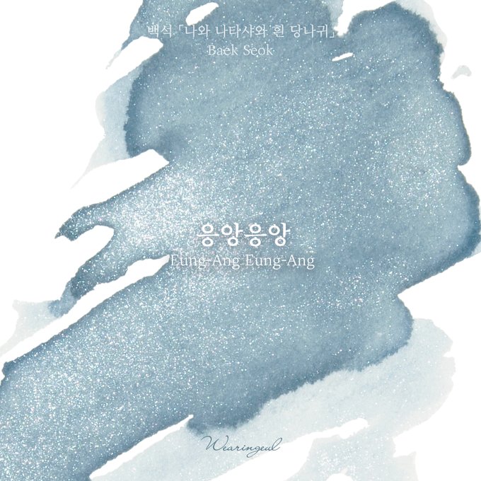 RT ) 흡혈귀에게 물린 듯 선명한 적색 위 서서히 얼어붙는 심장처럼 푸르스름한 펄이 올라오는 색. 많은 양을 올릴 수록 흑색에 가깝게 짙어지는 선혈을 닮은 잉크.
