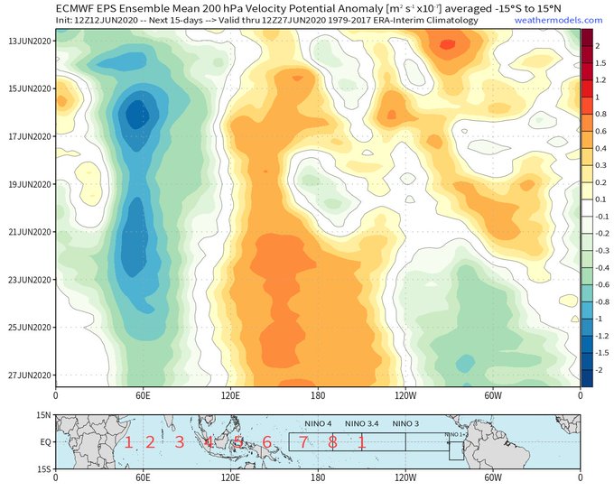There will be some low freq. enhancement that gives this standing wave characteristics. One major implication of this: stronger W African Monsoon & African Easterly Waves that serve as seedlings for most Atlantic hurricanes. Maybe we see an E Atlantic tropical cyclone before Aug? https://t.co/08ZQb2AoEi
