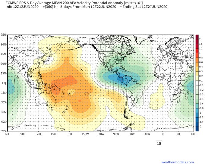 Fwiw, the EPS is consistently hinting at a massive uptick in E Pacific & W Atlantic convection near the end of June. This may result in a burst of NE Pacific tropical cyclones & perhaps a more favorable subseasonal state for tropical cyclogenesis in the Atlantic by early July.