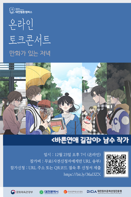 ●웹툰<바른연애 길잡이> 남수작가와 함께 하는 '만화가 있는 저녁' 참가자 모집