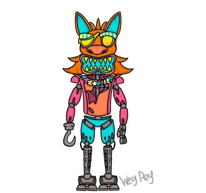 So i saw that fnaf AR has some goofy reskins for holidays so i thought i would come up with a silly concept for summer variant. i call him Tiki Foxy.