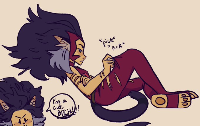 Thinking about catra without her face mask? Helmet??? Anyways, she's cat.#SheraandthePrincessesofPower #spop #catra #catradora #adora #shera