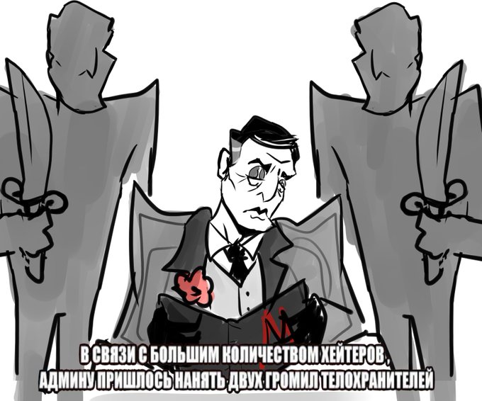 eng: "Because of large quantity admin had to hire two big bodyguards" (quote from ru meme)