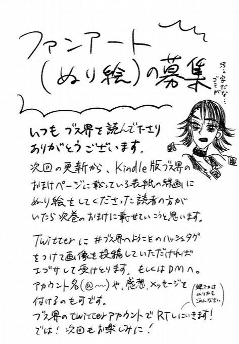 二次創作絵や、表紙のぬり絵も随時、募集しております。二次創作絵やぬり絵は制作者さんの許可を頂いた後、Kindleの巻末に収録させて頂いてます。ありがとうございます☺️