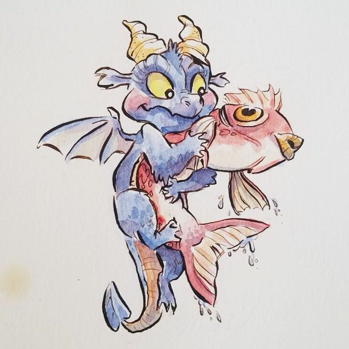 Catching dinner! #dragon #fish #catch #sketch #watercolor #gpen #fantasy #fabrianoartistico