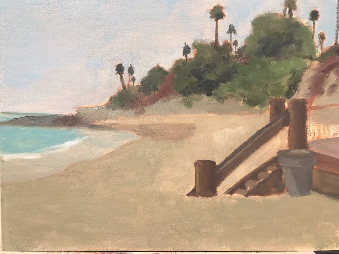 I got to freshen up under the sun today. First pass on a two-week landscape painting.