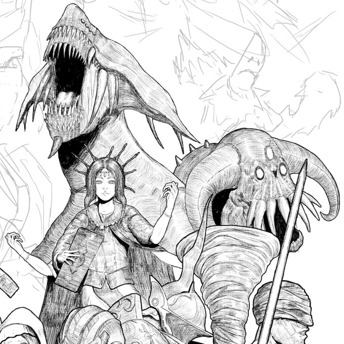 Wip alert! want to share more progress on the Demons Souls tribute poster. New lines, Fool's Idol - Vanguard - Dragon God