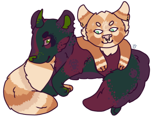 My fursona Salem and her boyfriend Bear, both designed and drawn by me :') My first art since July!!