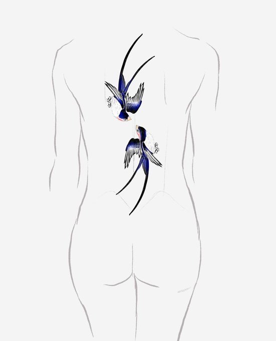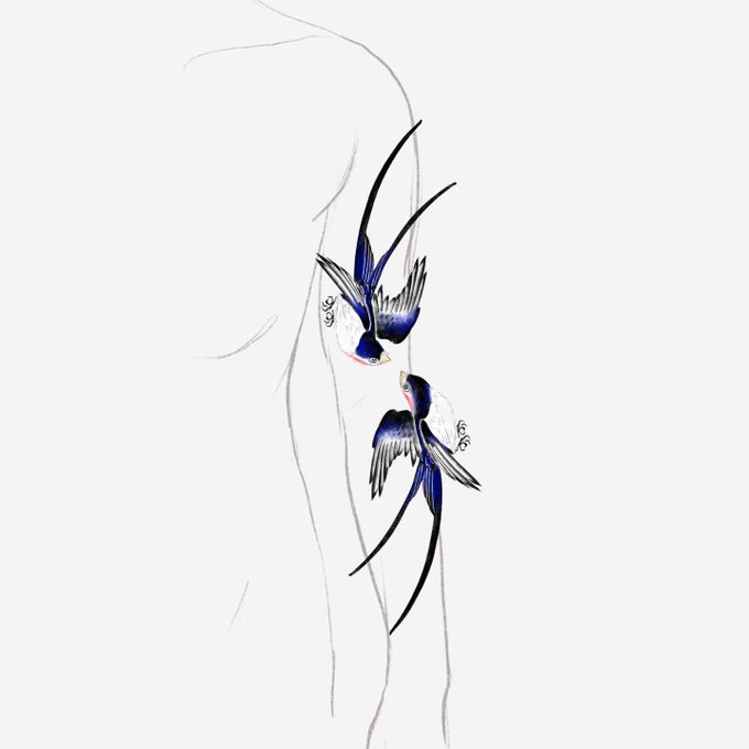 주인 찾는 쌍제비 이 도안은 두 마리를 함께 작업하는 도안입니다. 신체에 자유로이 배치할 수 있으며, 제비 한 마리의 가장 긴 길이를 기준으로 12cm부터 시작합니다. 팔과 등의 배치 예시대로 작업할 시 견적에 다소의 할인이 있습니다👀 #타투 #새타투 #동양화타투 #제비타투 #베조타투