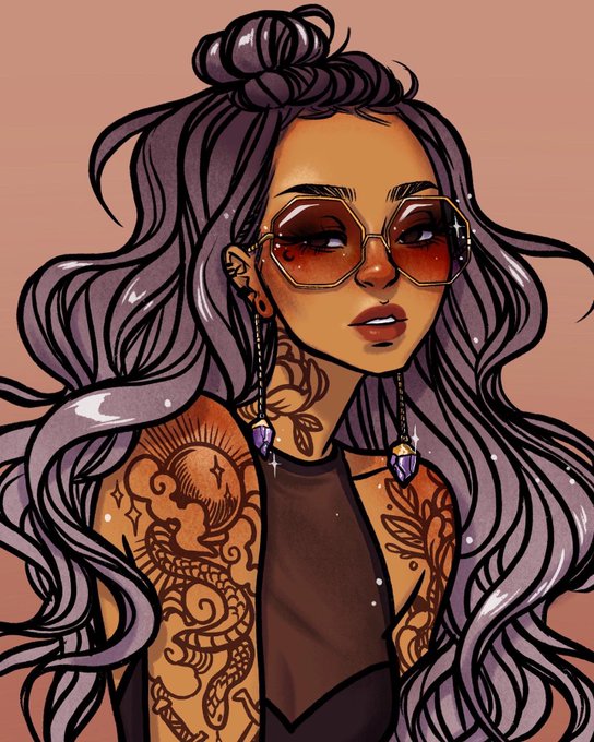 Drew these gorgeous sunglasses on one of my characters as a collab with mywillows🥰 they have chains with amethyst on the ends that drape over your ears I’m in love😩💕