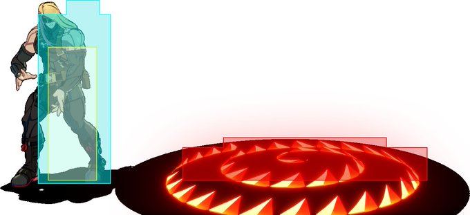 #GGST_ZA Invite Hell hitbox buffs, tallest and widest points (tallest also represents the hitbox for first active frame)