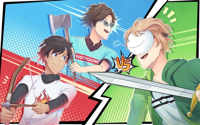 fanart for @DreamWasTaken, @GeorgeNotFound and @TwSapnap based on the manhunt duos video ! i think it turned out well✨ also thats prob my fav video lol