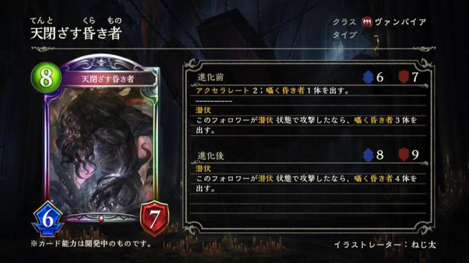 哀切の悪鬼さん2/2/2から6/6/6にナーフされたの何があったって感じだけど 正直、この見た目で2/2/2って言う方が無理あったから納得